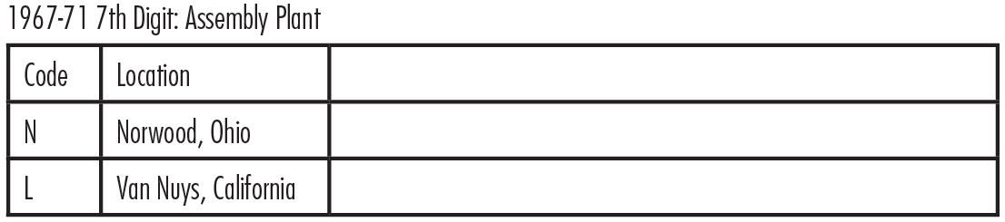 Production Plant: N=Norwood, Ohio, L=Van Nuys, California