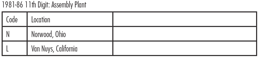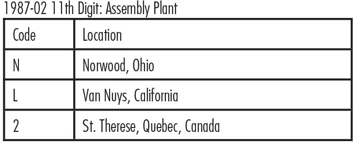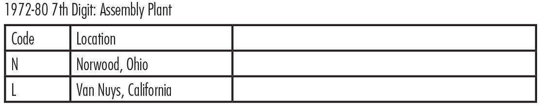 Production Plant: N=Norwood, Ohio, L=Van Nuys, California, 2=St. Therese, Quebec, Canada