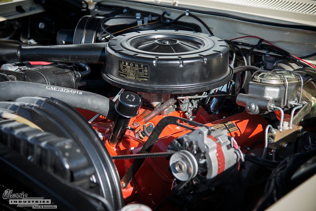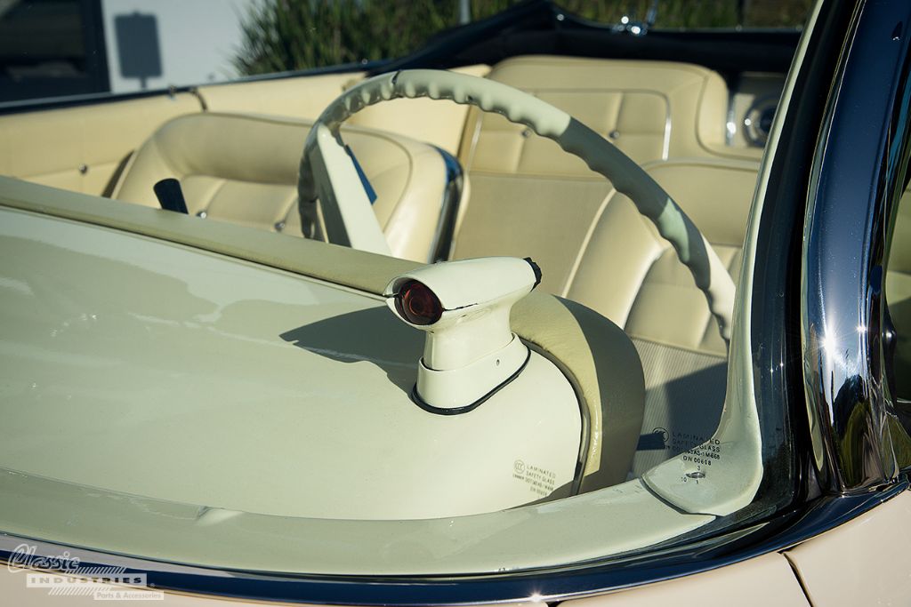 This particular '62 is a Super Sport convertible in sophisticated Corona Cream paint. The car is powered by a 327ci V8 mated to a TH-350 transmission, a combination that propels it effortlessly to freeway speeds. The engine bay and gold vinyl interior are virtually spotless, just like the Impala's exterior.